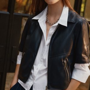 The perfect addition to your transitional wardrobe, the Billie Moto by EVEREVE features a classic collar, short sleeves with zipper detailing, and a slightly cropped silhouette.