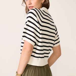 Craftedin a sustainable knit with a hint of silk, this so-chic polo sweater by Paige features a boxy, cropped silhouette with feminine puff sleeves and a collaredbutton-front neckline.