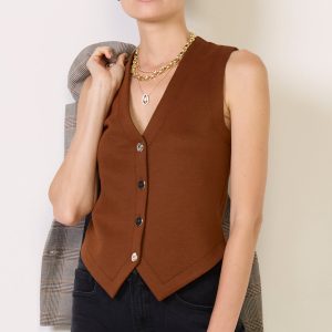 This so-chic vest by EVEREVE will instantly elevate your summer wardrobe,featuring a fitted, cropped silhouette, ponte knit fabric, and hammered front buttons.