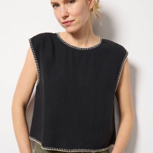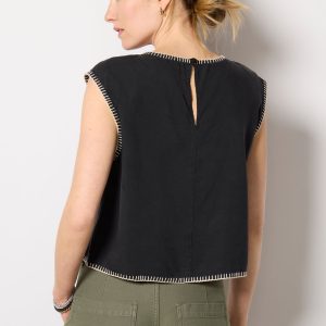 Blanket stitch trim details this stylish top by Cloth & Stone. Perfect for your spring-to-summer wardrobe, this chic sleeveless top features a cropped fit, back keyhole button closure, and soft, drapey Tencel fabric.