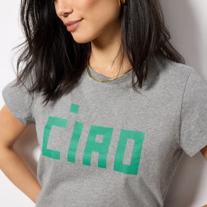 Top off your graphic tee collection with the Block Ciao Classic Tee by Clare V., featuring soft cotton fabric, short sleeves, and a relaxed, cropped fit.