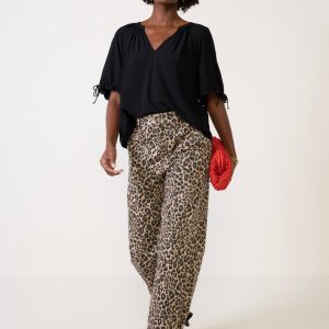 Utility pockets detail these stylish barrel leg pants by Sanctuary,finished in eye-catching leopard print fabric with a high-rise waist and full-length inseam.
