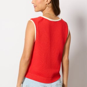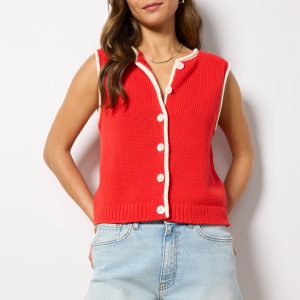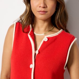 Look chic all season in the Bridget sweater vest by Alex Mill. Crafted in a cotton knit with contrast tipping, this sleeveless sweater features a cropped silhouette with a round neckline, rolled edges, and front button closures.
