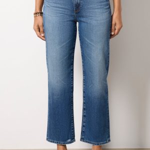 Crafted in soft stretch denim, the Brinley Crop from AG features a mid-rise waist, ankle-length inseam, a clean blue wash, and a straight-leg silhouette.