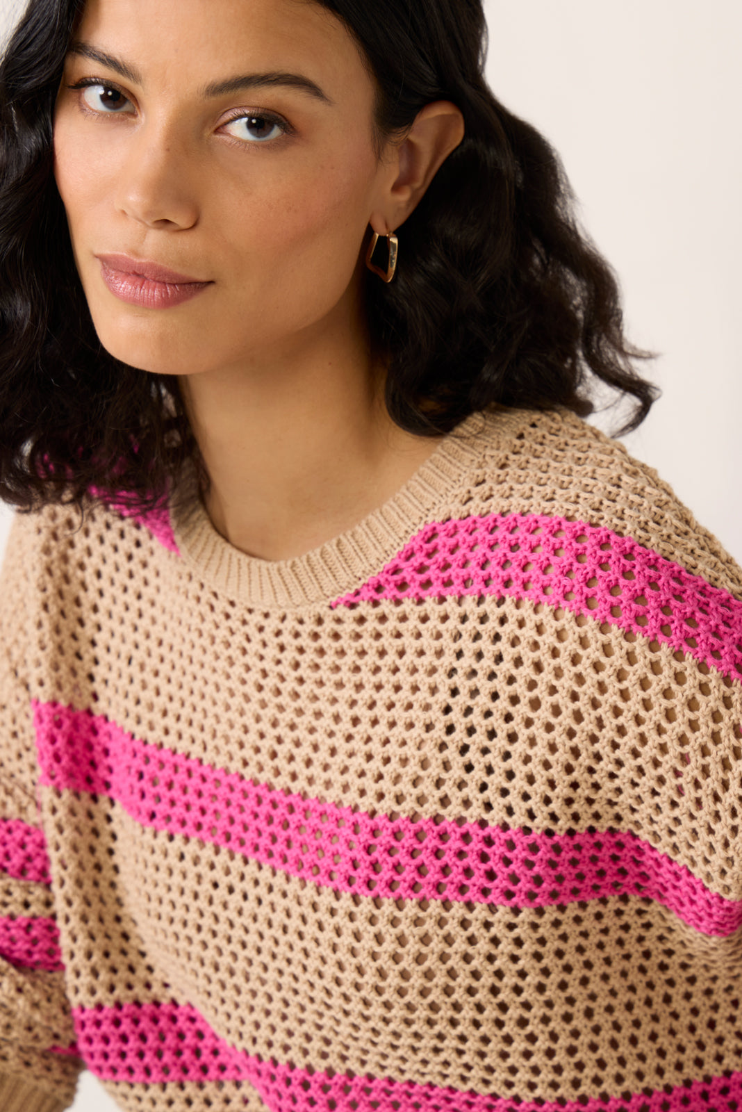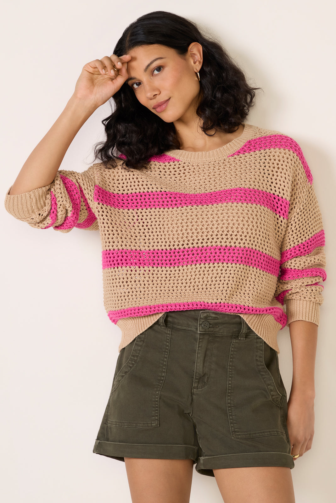 Finished with airy open stitching, the Broadbeach striped sweater by Z Supply is crafted in a cotton crochet knit with a crew neckline and relaxed, cropped fit.