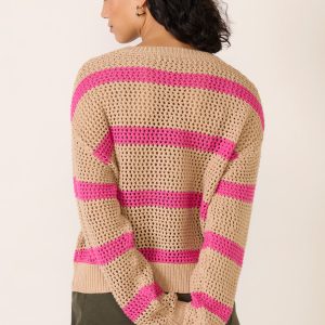 Finished with airy open stitching, the Broadbeach striped sweater by Z Supply is crafted in a cotton crochet knit with a crew neckline and relaxed, cropped fit.