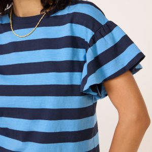 Ruffled short sleeves add a feminine flair to this striped tee by Nation LTD, featuring a crewneck silhouette in cotton fabric.