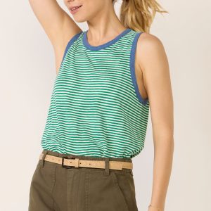 A versatile summer staple, this striped ringer tank by Clare V. is finished in a cotton-linen blend and features a relaxed, cropped fit, crew neckline, and contrasting trim.