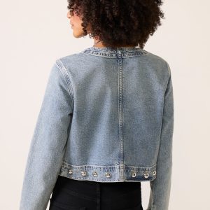 Bold silver studs at the hem and cuffs add the perfect edge to this denim jacket by Rails, featuring a cropped silhouette, chest pockets, and front button closures.