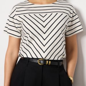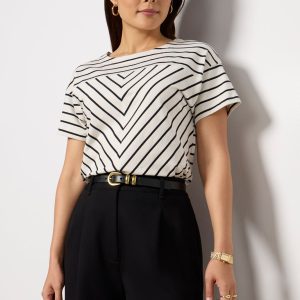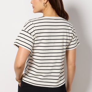 The Caroline striped tee by EVEREVE will take you from workweek to weekend plans in style. Finished with a chevron design at the front, this versatile top is crafted in soft Pima cotton and features a relaxed, slightly cropped fit, crew neckline, and dropped shoulders.