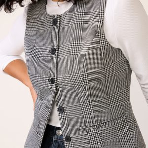 The Caroline vest by EVEREVE will be your work-to-weekend MVP.Finished in a houndstooth plaid pattern, this chic vest is crafted from comfortable stretch ponte fabric and features a fitted, cropped silhouette with front button closures.