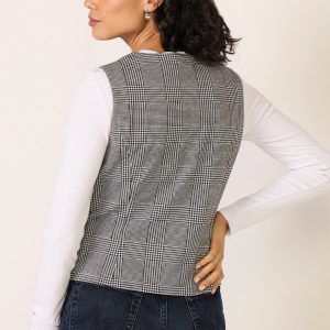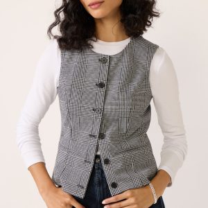 The Caroline vest by EVEREVE will be your work-to-weekend MVP.Finished in a houndstooth plaid pattern, this chic vest is crafted from comfortable stretch ponte fabric and features a fitted, cropped silhouette with front button closures.