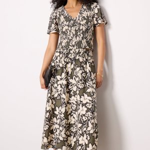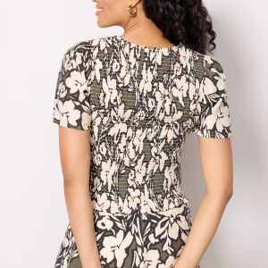 A gorgeous smocked bodice defines the Carson Floral Top by EVEREVE, featuring a v-neckline, relaxed short sleeves, and a cropped silhouette. Make it a matching set by pairing it with theCarson Skirt.