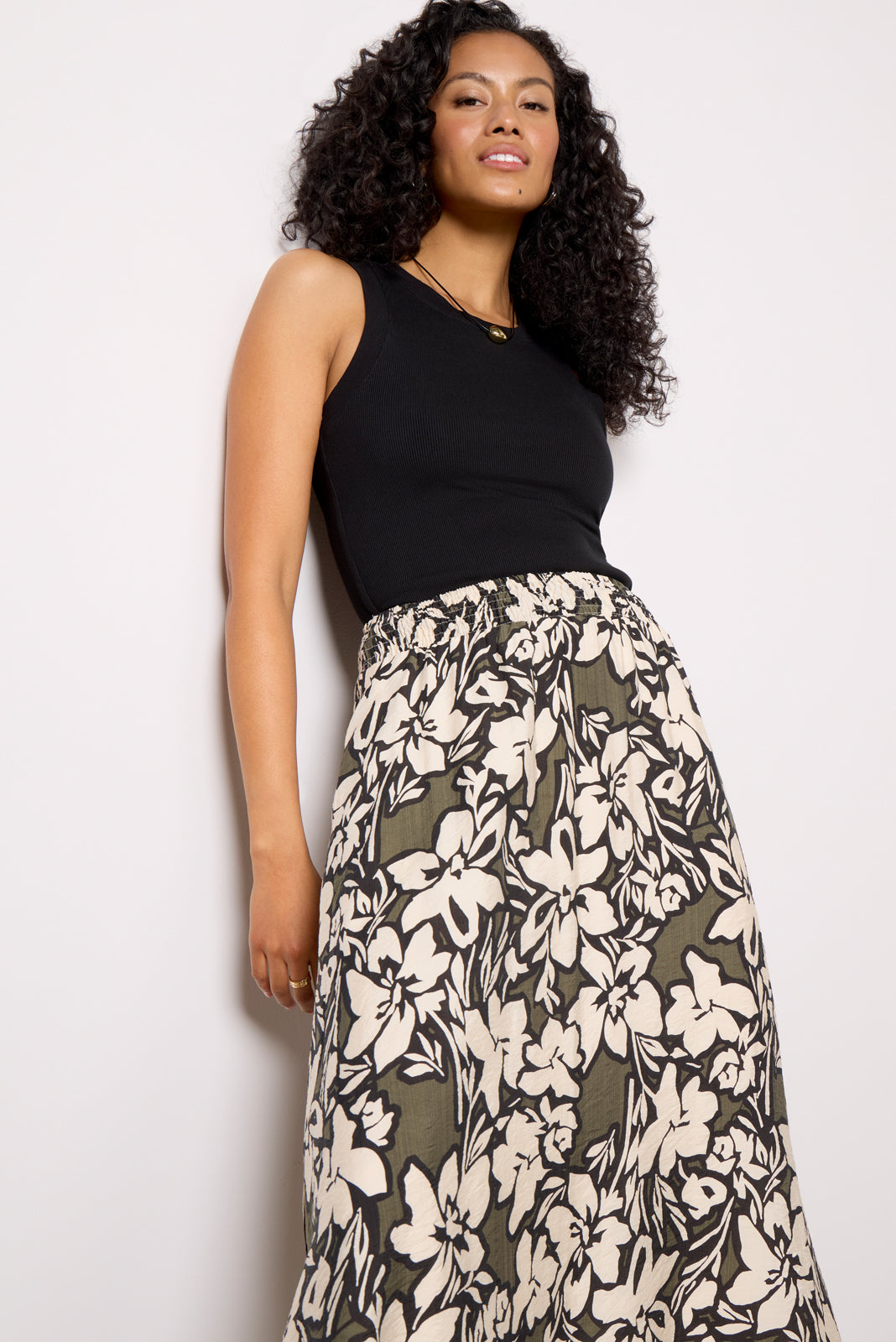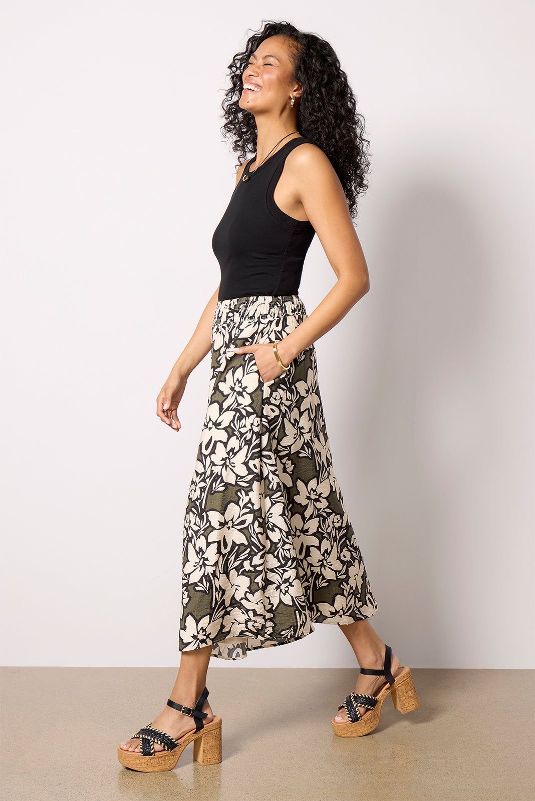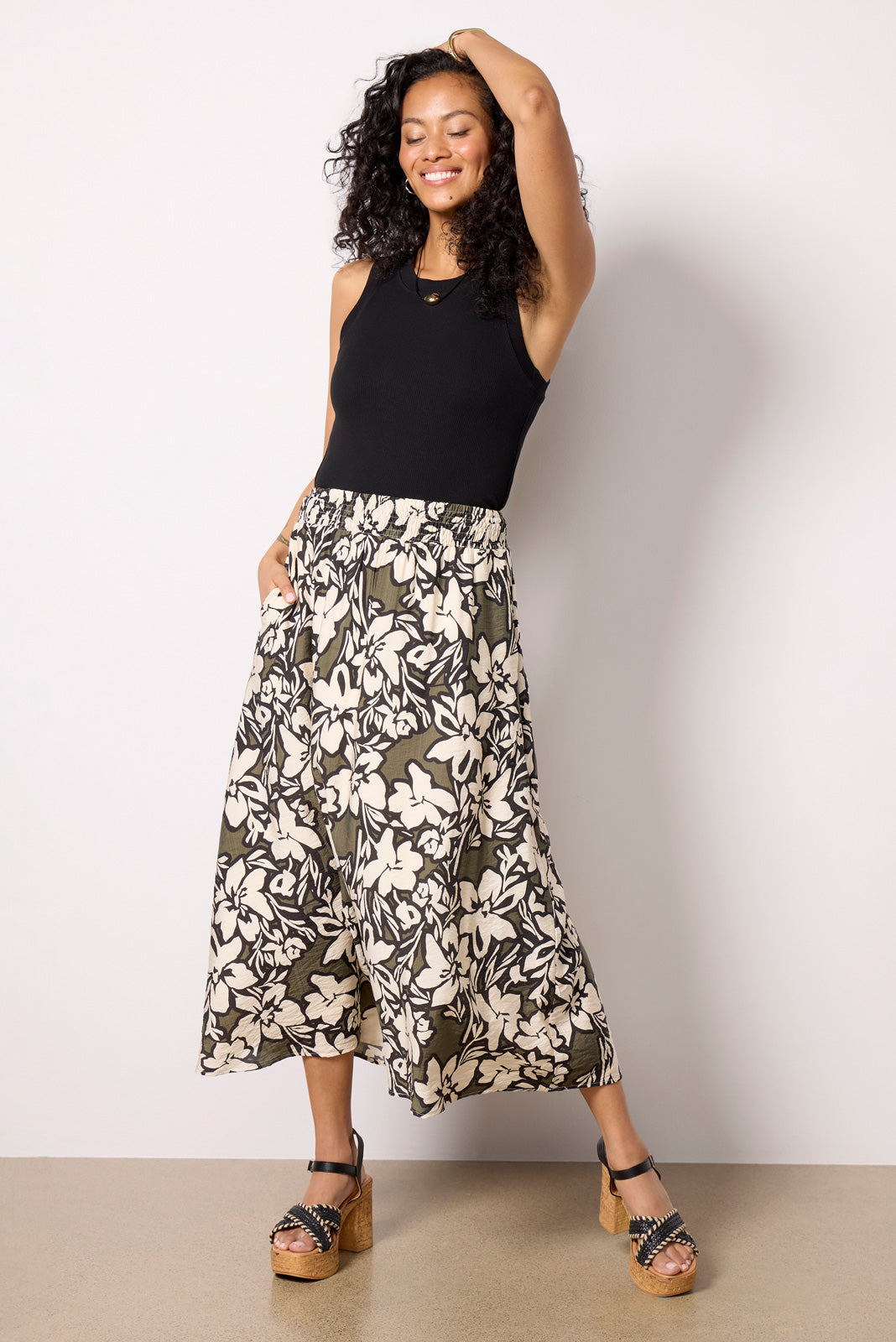 A bold floral print defines the Carson Skirt by EVEREVE, featuring a smocked elastic waistline, side pockets, and a midi-length silhouette. Make it a matching set with theCarson Floral Top.
