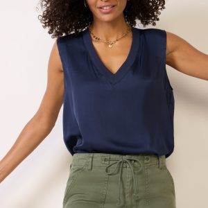 Update your top collection with the Celina Tank by perfectwhitetee, featuringa sleek satin fabric, v-neckline, and a relaxed silhouette.