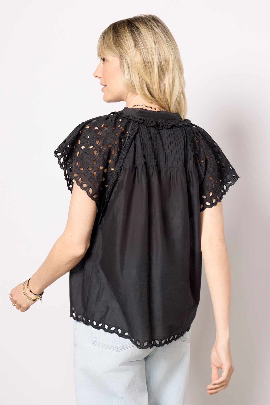 Step into spring with the Cerise cotton blouse by Rails, featuring a flowy button-front silhouette with pleated details and delicate eyelet embroidery at the flutter sleeves and hem.