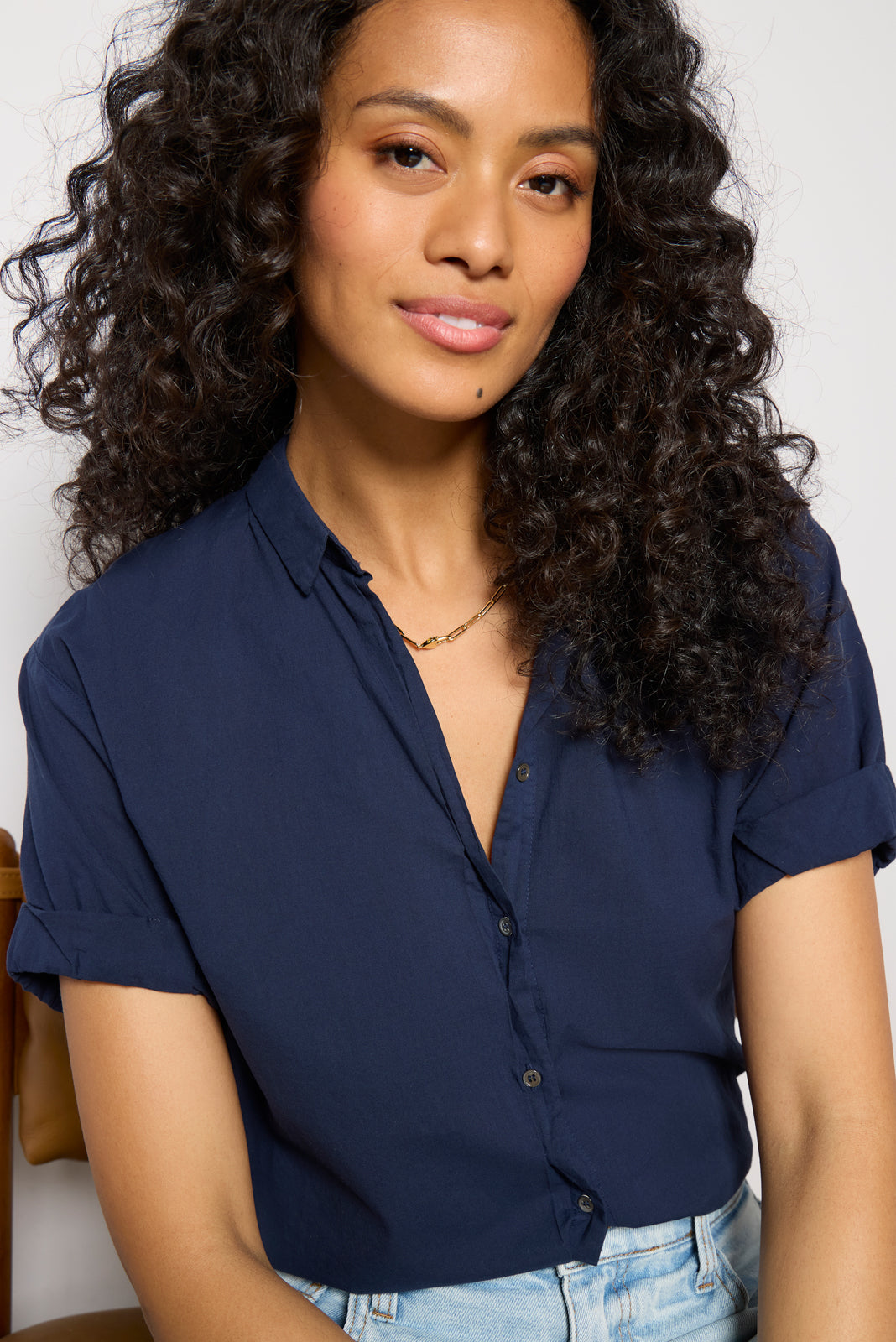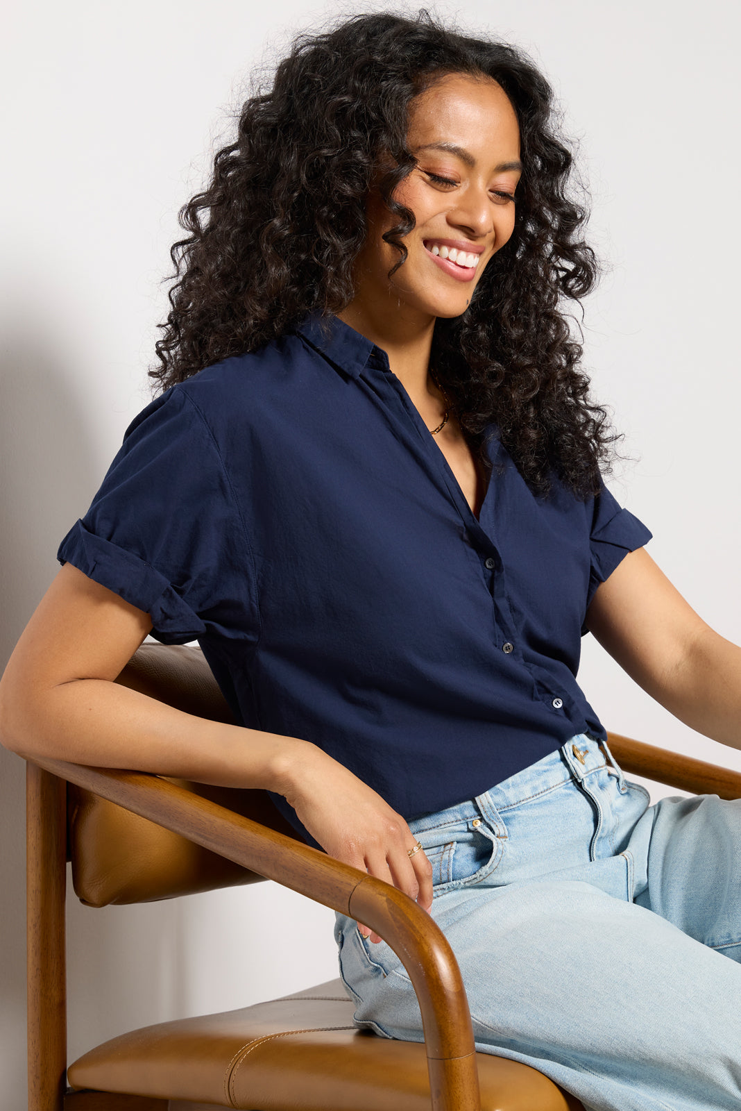 An effortlessly chic essential, the Channing button-down shirt by Xirena iscrafted in lightweight cotton poplin with a relaxed fit, curved hem, and rolled short sleeves for a bit of edge. Style with a pair of cargo pants, or wear half-tucked into your favorite jeans.