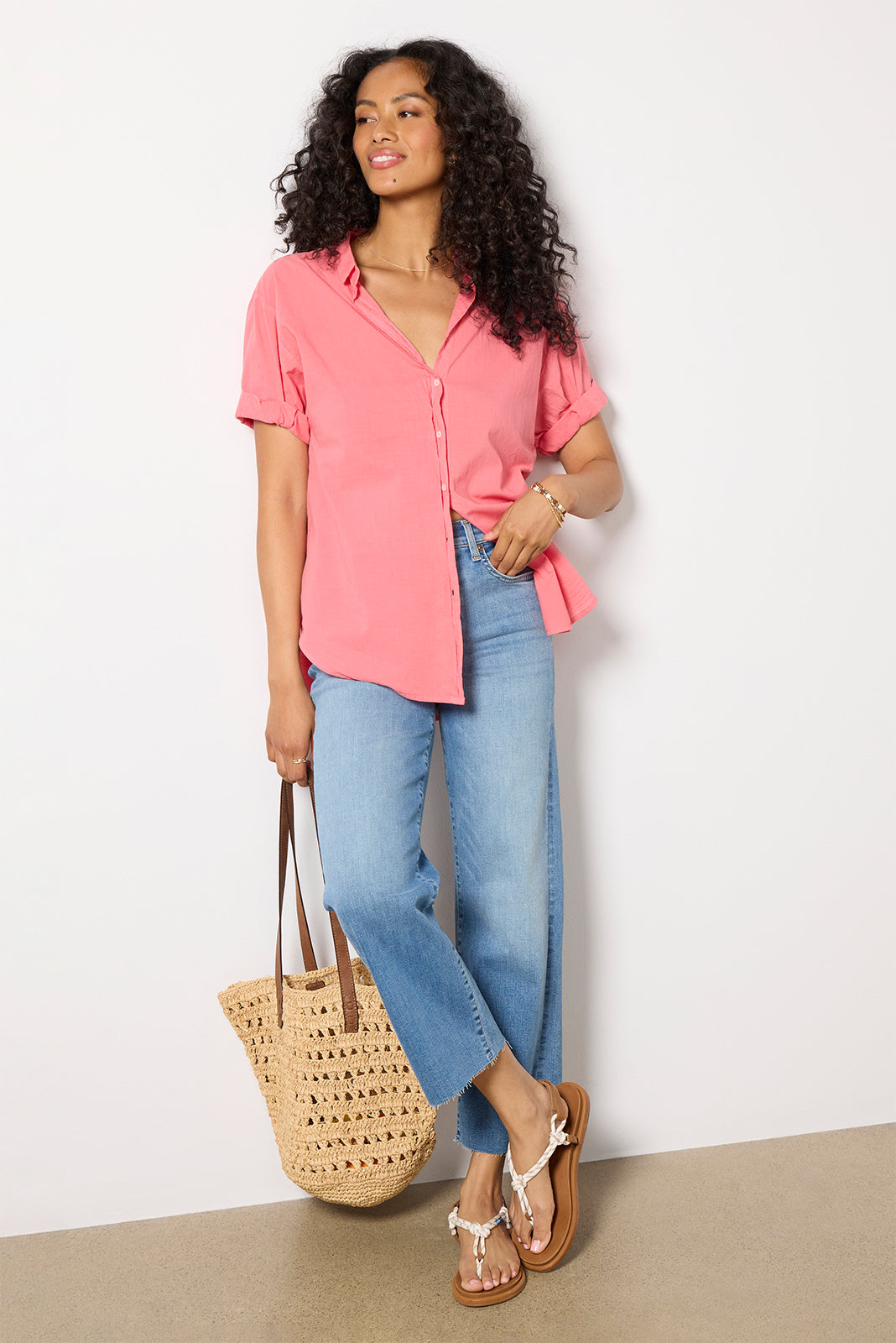 An effortlessly chic essential, the Channing button-down shirt by Xirena iscrafted in lightweight cotton poplin with a relaxed fit, curved hem, and rolled short sleeves for a bit of edge. Style with a pair of cargo pants, or wear half-tucked into your favorite jeans.