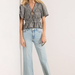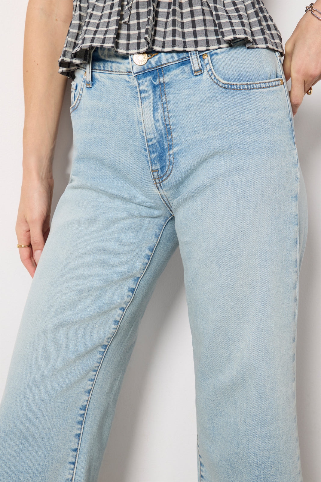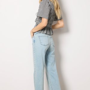 A relaxed fit defines the Charlottejean by KUT From The Kloth, crafted in light-wash denim with a mid-rise waist and ankle-length raw hems.