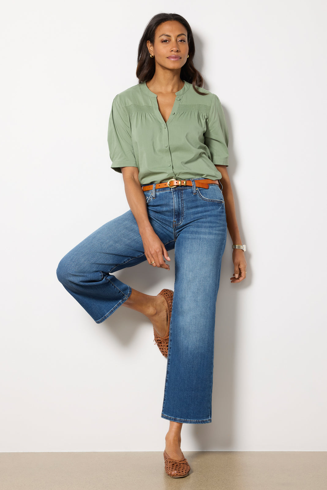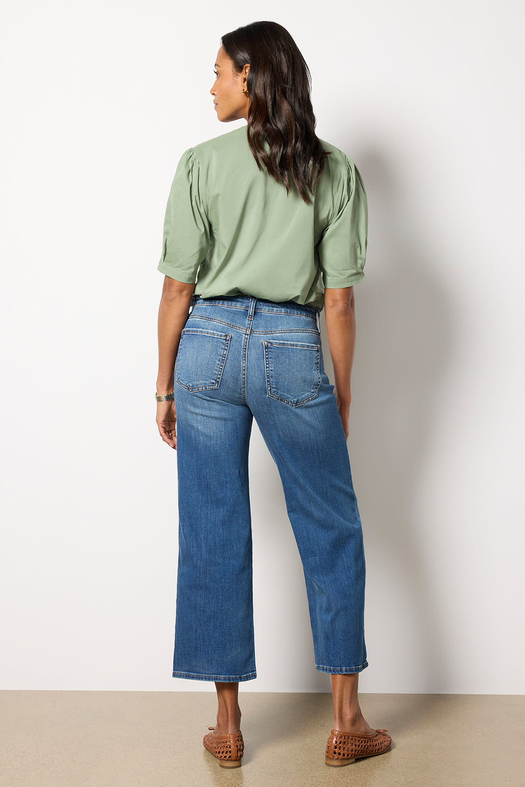 A relaxedfit defines the CharlotteJean by Kut from the Kloth, featuring a mid-rise waist, zipper closure, and a cropped wide-leg silhouette.