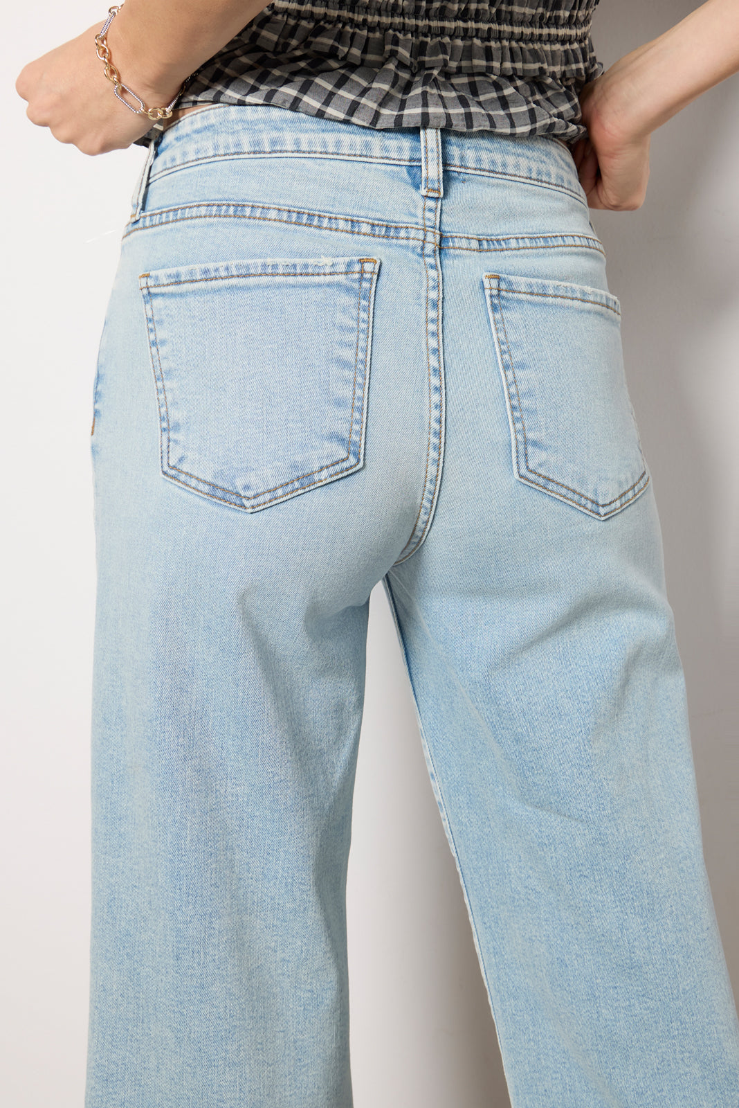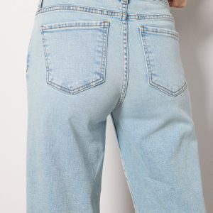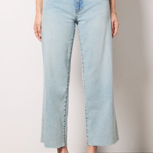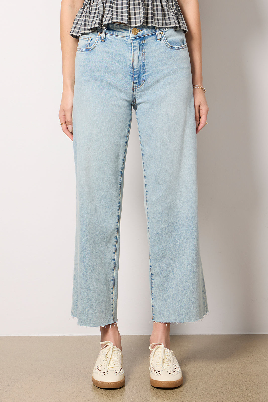 A relaxed fit defines the Charlottejean by KUT From The Kloth, crafted in light-wash denim with a mid-rise waist and ankle-length raw hems.