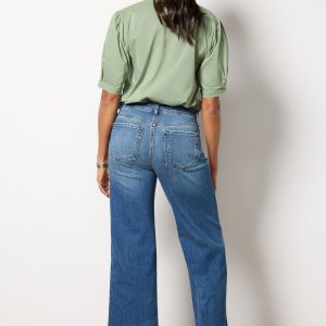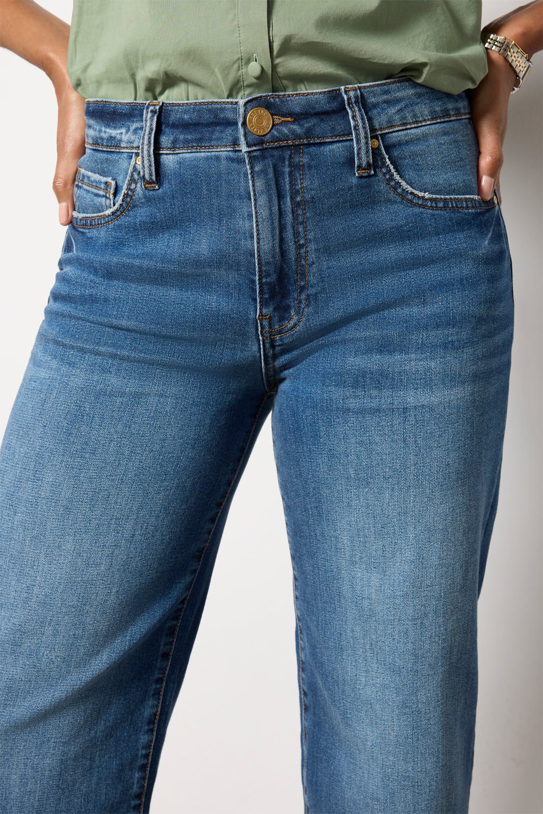A relaxedfit defines the CharlotteJean by Kut from the Kloth, featuring a mid-rise waist, zipper closure, and a cropped wide-leg silhouette.
