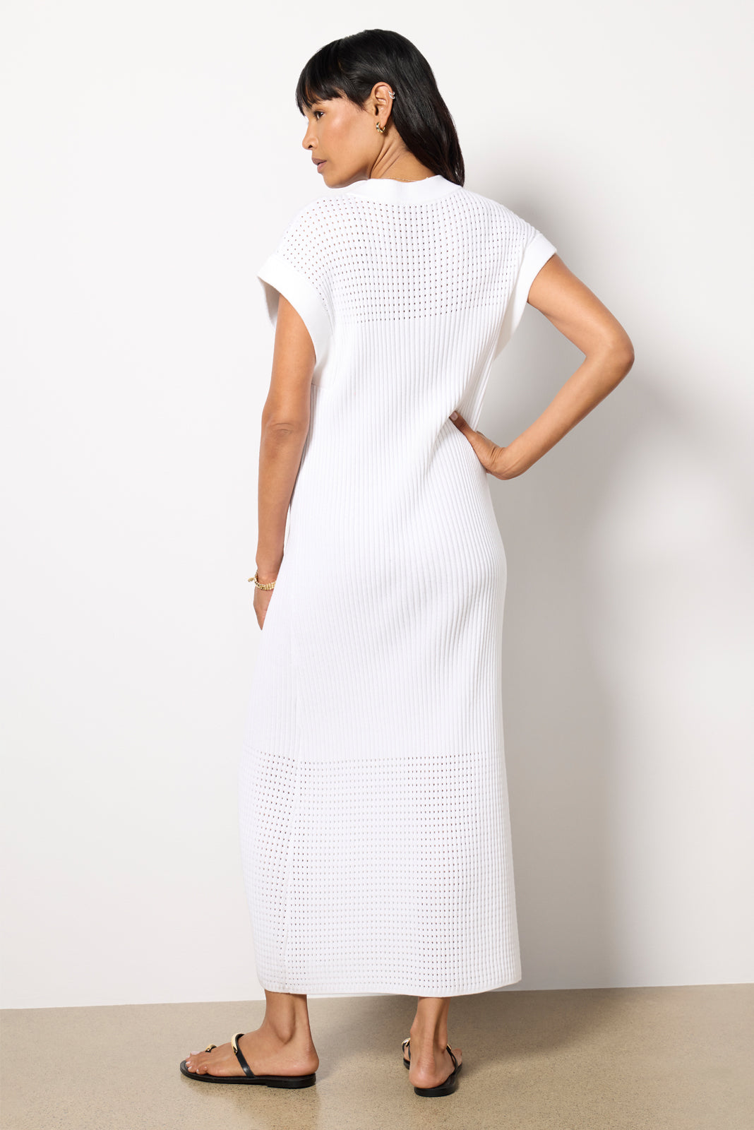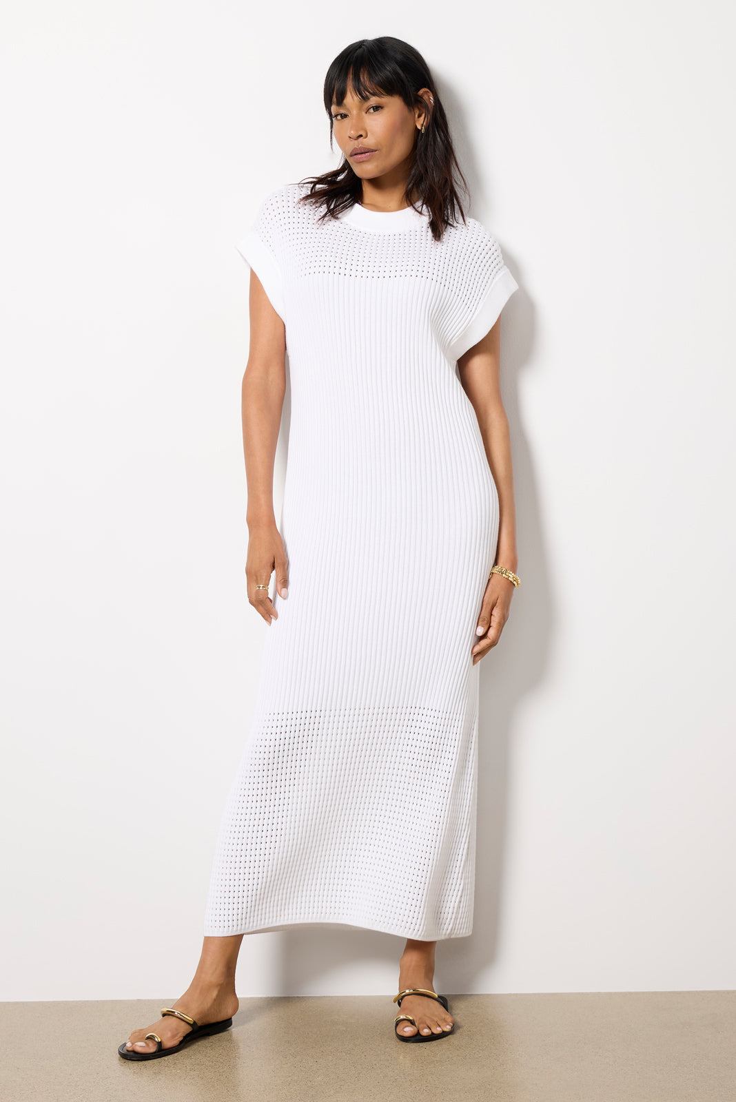 Chic and summery, the Chestonmaxi sweater dress Varley is finished in a textured cotton knit with open stitch details and dropped shoulders—perfect for wearing from day to night.