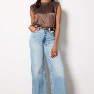 A satin finish elevates the City Nights Muscle Tank by LA Made, featuring a crew neckline, contrasting rib knit details, and a classic fit.