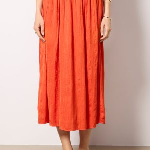 Finished in a satin-textured fabric, this easy skirt from Z Supply features an elastic waistband and a lined midi-length silhouette.