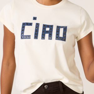 Top off your graphic tee collection with the Classic Tee by Clare V., featuring a relaxed, cropped fit, short sleeves, and “Ciao” block lettering with stud details.