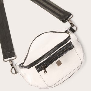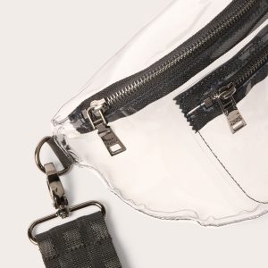 The perfect clear bag for all your stadium events this season, this Think Roylnbelt bagfeatures a top zipper closure, a front pouch with a zipper, andthree detachable strap options—a chain strap, a long crossbody strap, and a short crossbody strap.