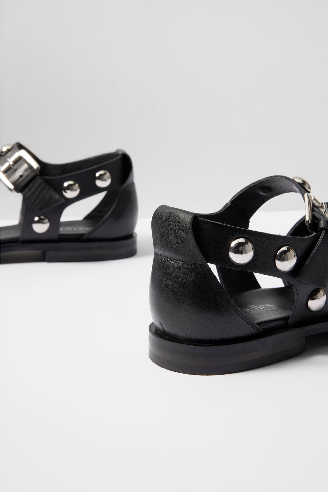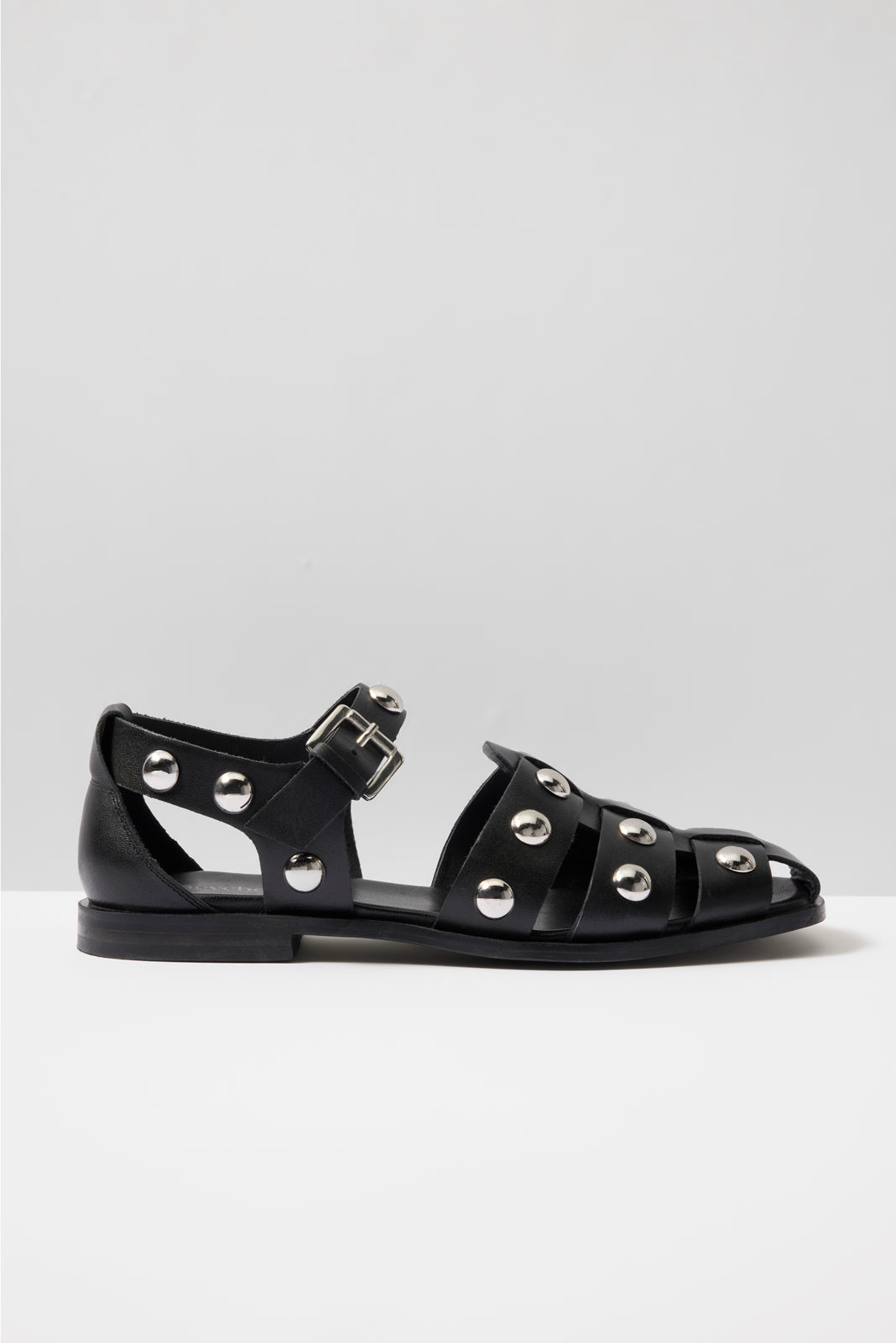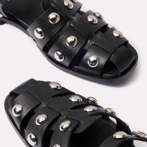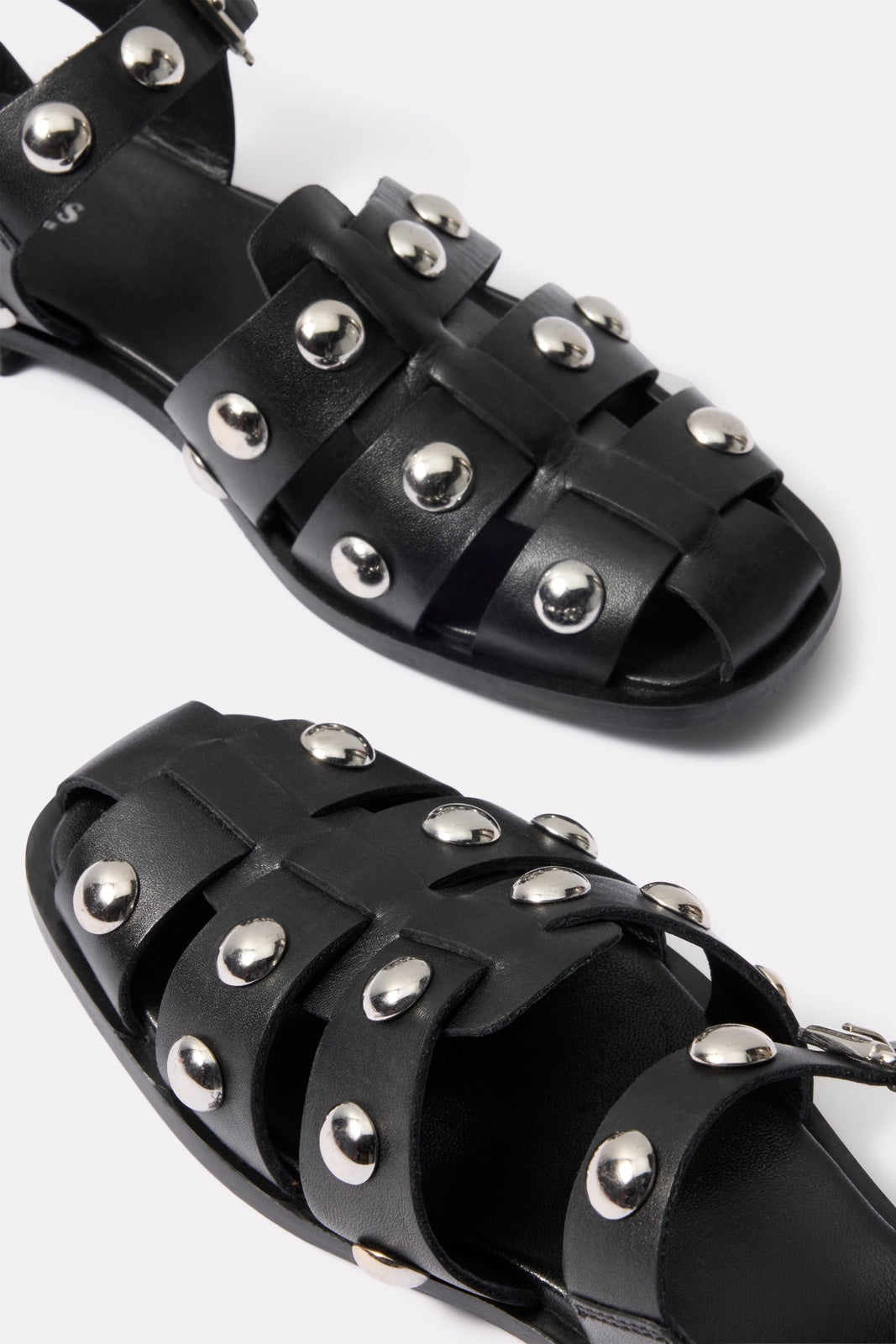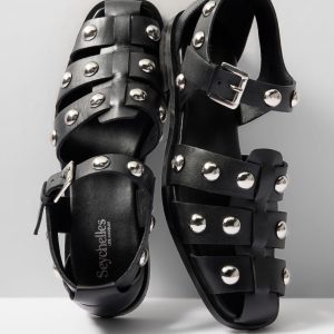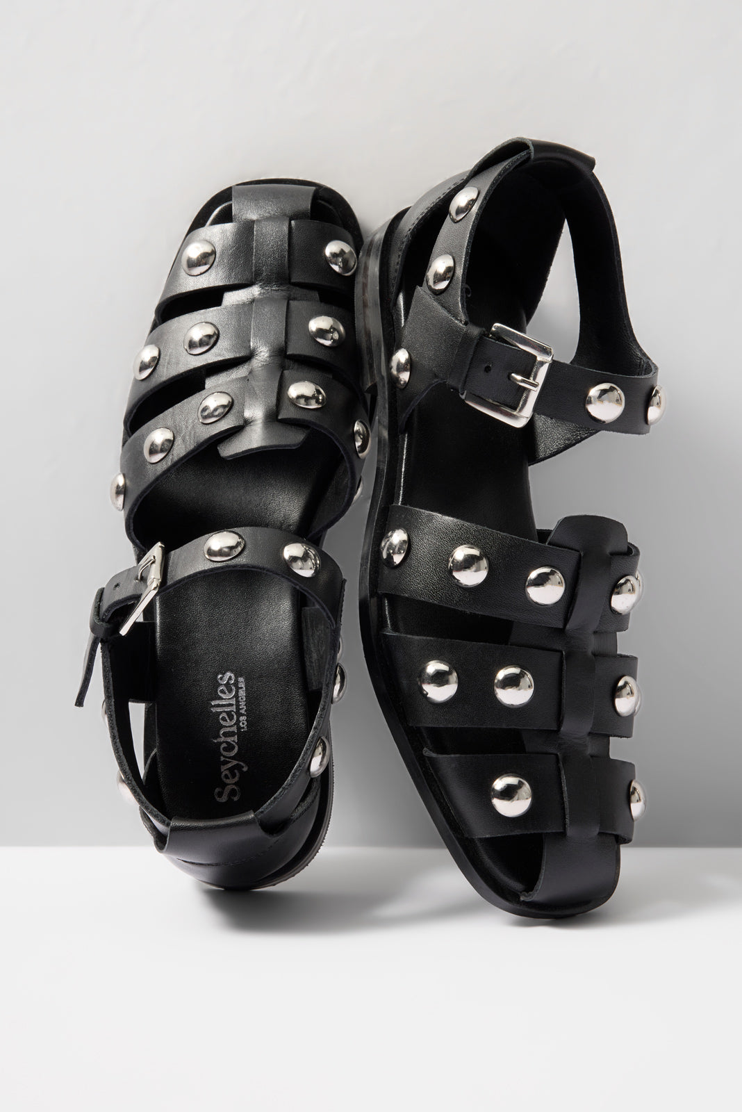 Silver studs add a stylish edge to these fisherman sandals by Seychelles,crafted in soft black leather with a strappy design and adjustable buckle closure.