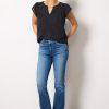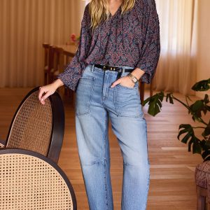 Utility pocketselevate the effortlessly cool Corabarrel jean by EVEREVE. Finished in cotton-blend denim with a hint of distressing,these high-rise jeans feature a cropped inseam and curved leg with darting details at the knee.
