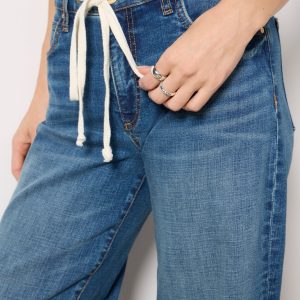 Utility pocketselevate the effortlessly cool Corabarrel jean by EVEREVE. Finished in cotton-blend denim with a hint of distressing,these high-rise jeans feature a cropped inseam and curved leg with darting details at the knee.
