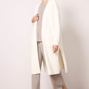 Add a luxuriously soft cardigan to your sweater collection with this cozy layer from Barefoot Dreams. This cardigan features a midi length, high slits at the sides, and rib finishing at the sleeves, pockets, and bottom openings.