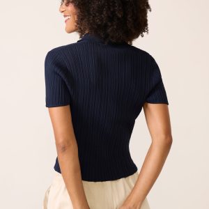 Elevate your top collection with thisshort-sleeve polo sweater by French Connection, crafted in a crinkle rib knit with a slim, cropped fit and pearl button closures that add the perfect finishing touch.