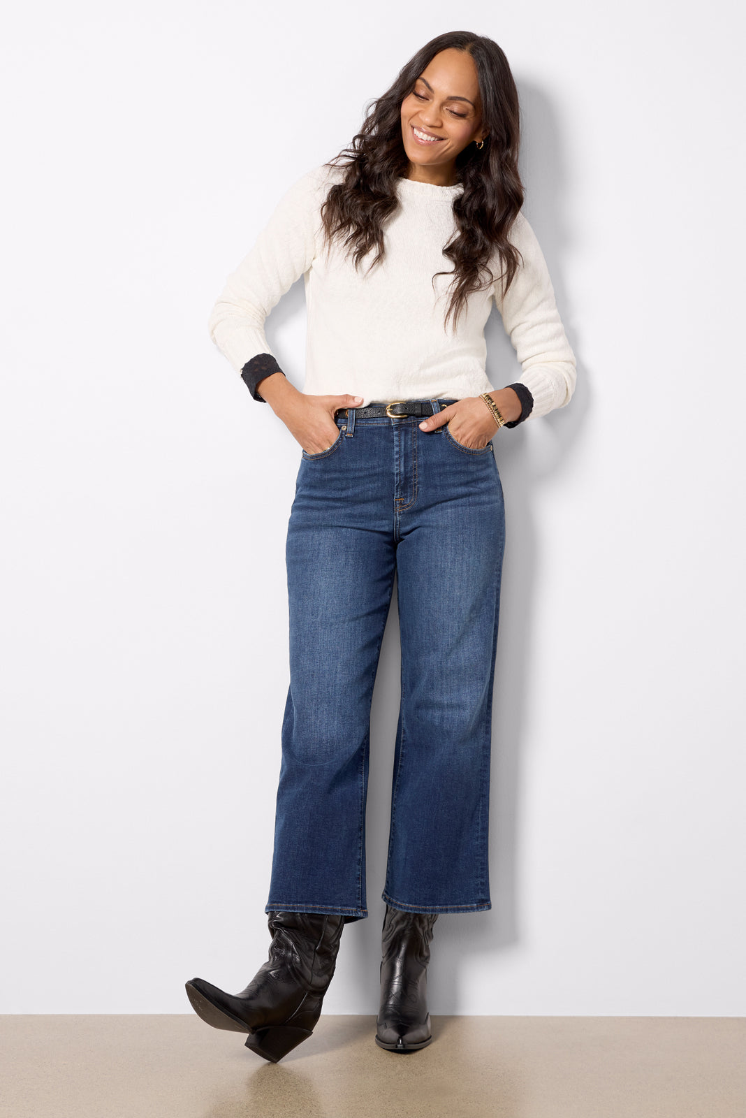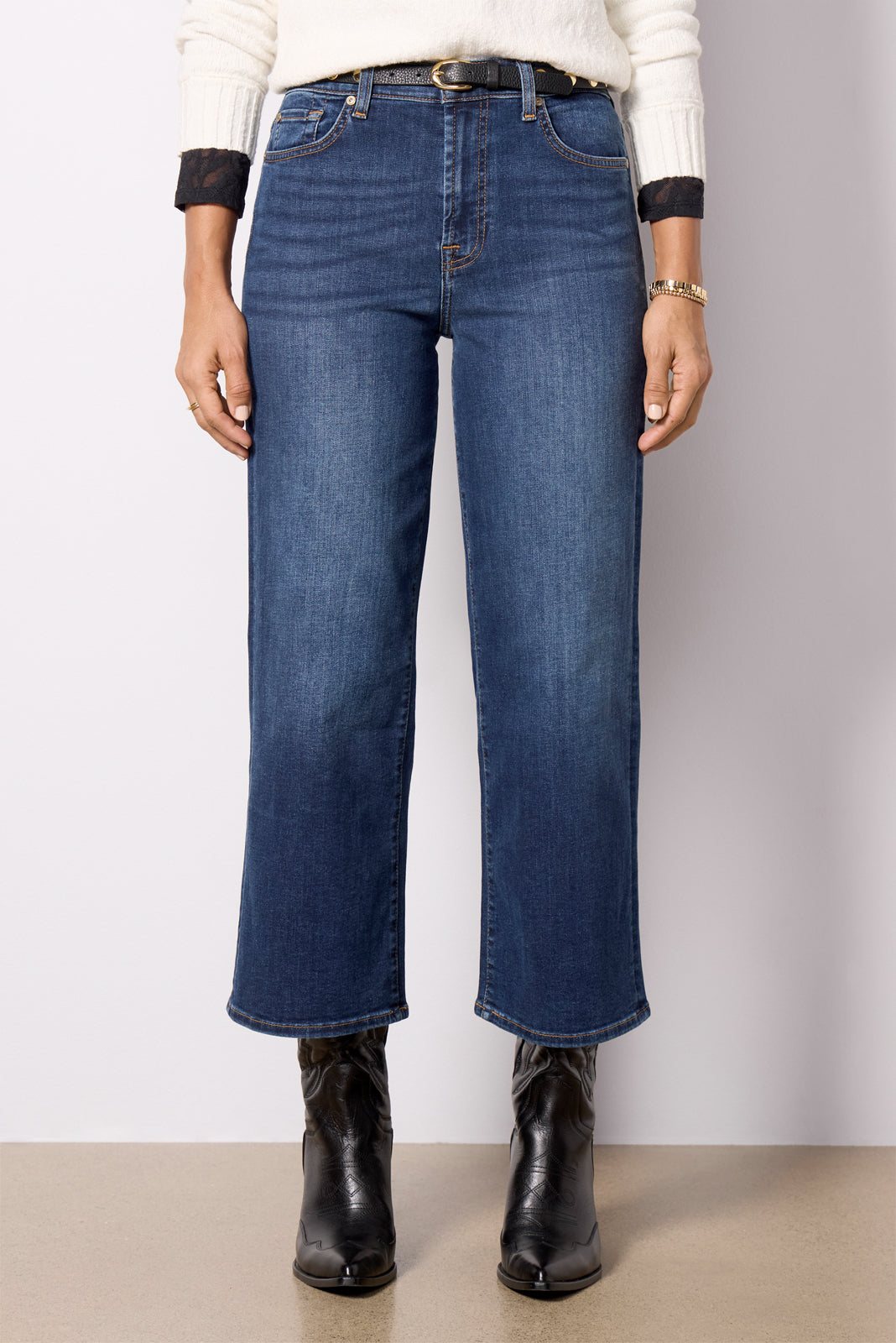 A cropped wide leg creates the chic silhouette of these 7 For All Mankind jeans. Perfect for day-to-night wear, the Alexa features ankle-length hems and soft stretch denim fabric in a classic blue wash.