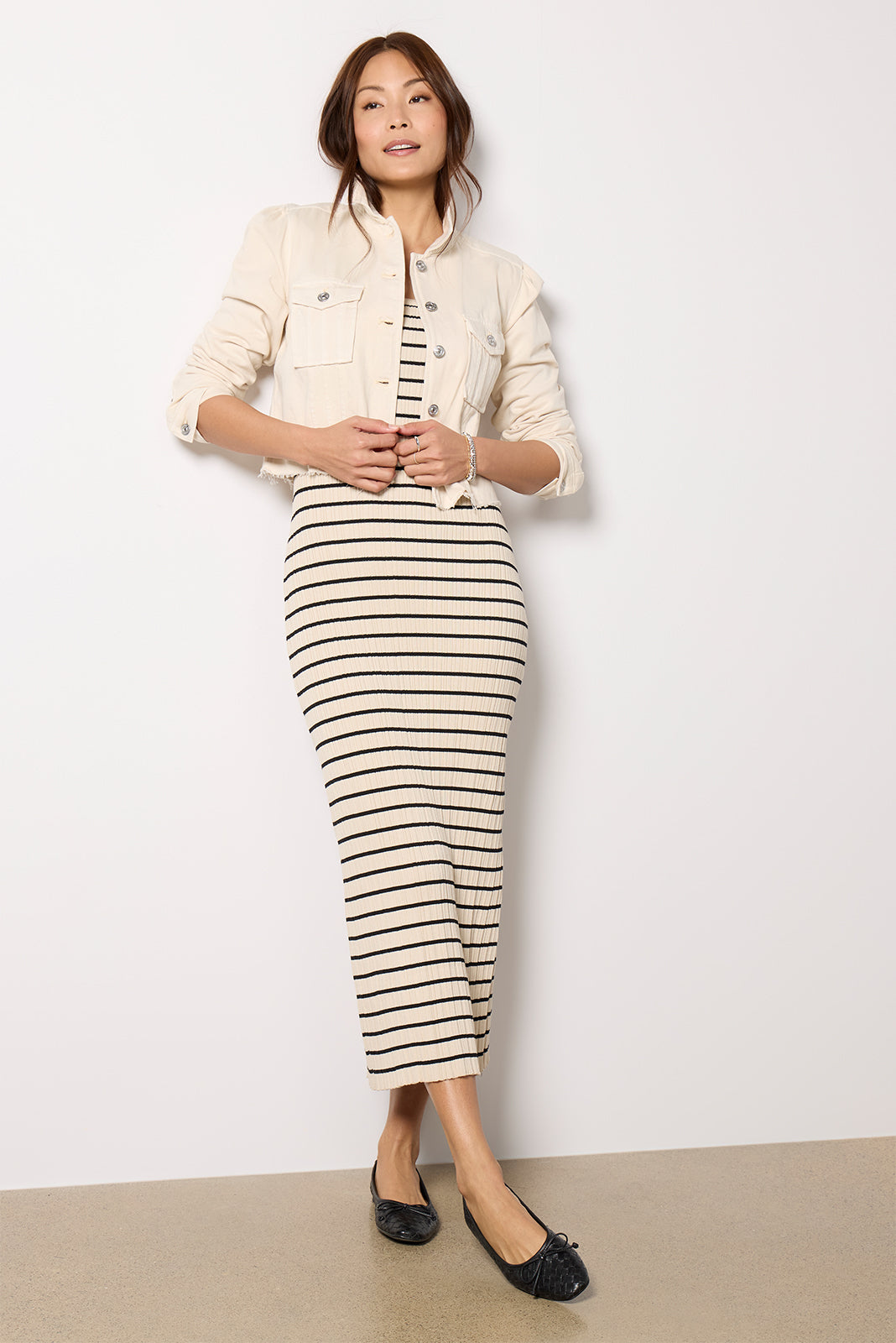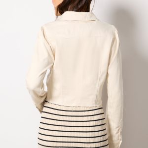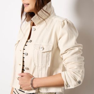 A classic denim jacket with an edgy, feminine feel, the Pacey by Paige features a cropped silhouette with a raw hem and button-front closure. The soft beige wash makes it the perfect addition to your layering collection.