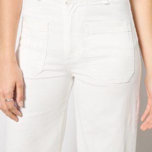 Finished in soft twill fabric, this modern sailorpant by ASKK NY features a high-rise silhouette with a relaxed wide leg, ankle-length hems, and patch pockets at the front and back.