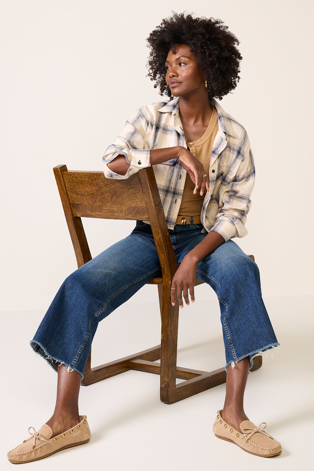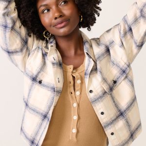 The perfect layer for fall, the Crosby Flannel by ASKK NY is crafted in a soft cotton blend and features a classic collar, front buttons, and a cropped, boxy fit.