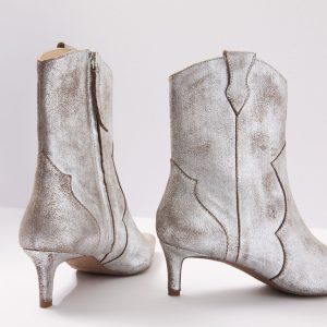 Step up your look with the Dallas kitten heel bootie by Seychelles. These metallic leather ankle boots feature a chic pointed toe, zipper closure, and Western-style stitching.