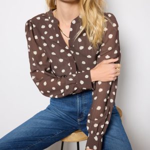 A chic pick for office or evening plans, the Darby blouse by EVEREVE is crafted from printed chiffon fabric and features a covered button placket and long puff sleeves.