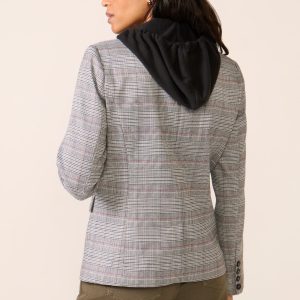 A removablesweatshirt dickey makes this EVEREVE blazer the ultimate two-in-one layer. The Dawson Plaid Blazer features a front button closure, button cuffs, and padded shoulders, while the knit zip-out dickey features a front zipper closure and adjustable hoodie—perfect for your work-to-weekend wardrobe.