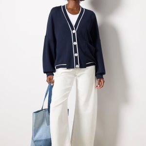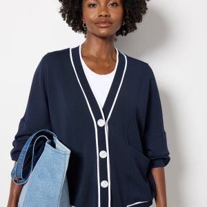Crafted in Varley’s signature DoubleSoft fabric, this easy cardigan features an oversized fit, dolman sleeves with an exaggerated drop shoulder, and stripe trim details.