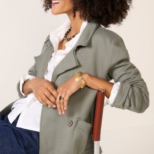 Look chic from work to weekend in the Diana blazer by Splendid,crafted in comfortable French terry fabric with a double-breasted button closure, patch pockets, and raw edge detailing.