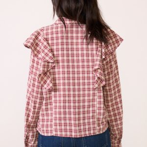 Add a hint of Western to your blouse collection with the Dru Ruffle Front Shirt by LNA, featuring a plaid print, point collar, front button closures, and a relaxed silhouette.