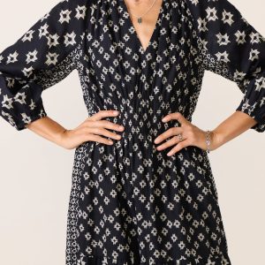 Elevate your fall dress collection with the Elen printed midi dress by Velvet, featuring a smocked waistline, flowy tiered skirt, and three-quarter puff sleeves.