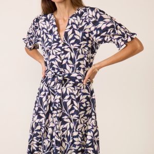 Finished in the perfect print for fall, theElianamididress by Rails features a split neckline, partial front button closures,a ruffle hem, shirred short sleeves, and a removable fabric belt.