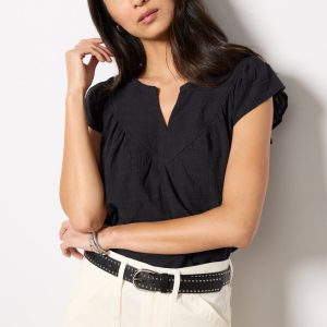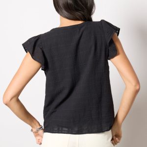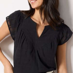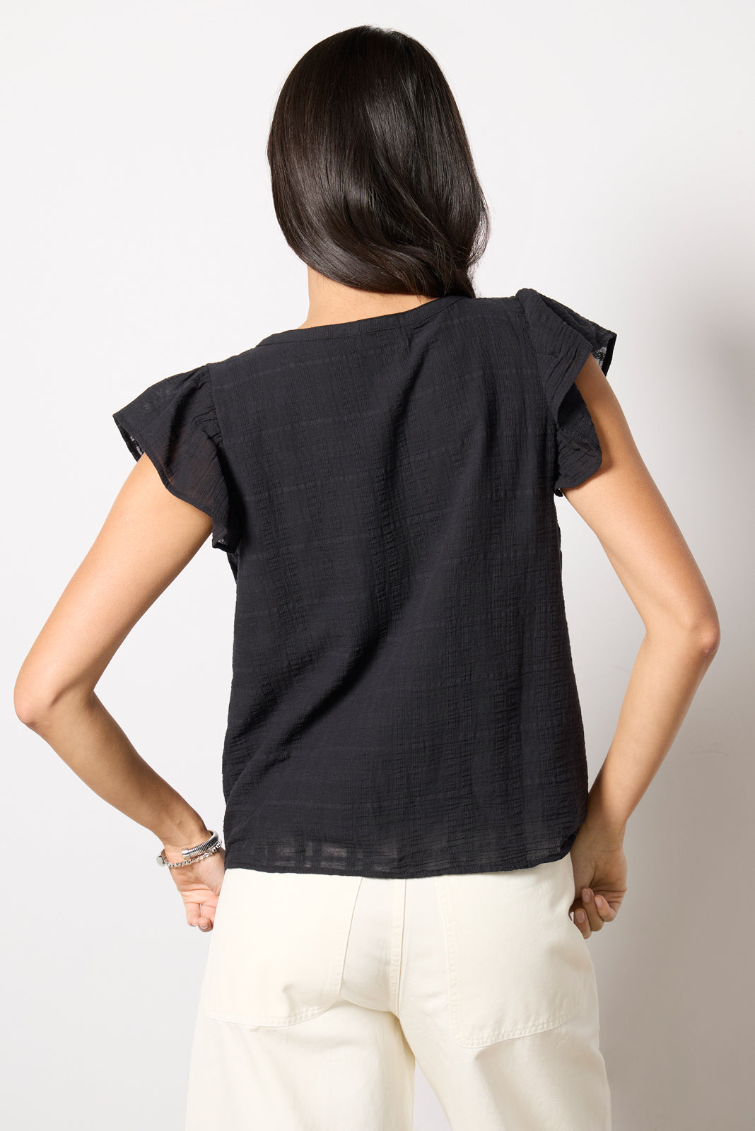 Elevate your spring style with the Eliana blouse by EVEREVE. Finished in textured crosshatch cotton fabric, this lined top features a flowy silhouette, V-shaped yoke, and short flutter sleeves for a fun, feminine feel.