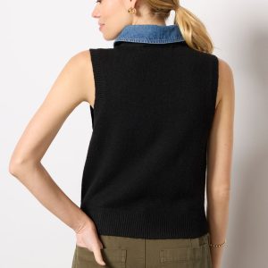 A chic two-in-one staple for your workwear wardrobe, the Ellie sleeveless sweater tank by French Connection features a cropped knit body with a removable denim collar.